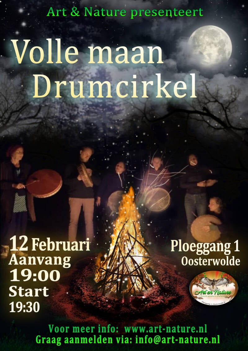 Op volle maan organiseren we drumcirkels. Op 12 februari staat de volle maan in het teken van het sterrebeeld 'Leeuw'' . je wordt dan uitgedaagd om volop te gaan voor wie je bent. Deze drumcirkel wordt begeleid door Roberto Lopez, een artiest uit Mexico. Je bent welkom vanaf 19.00 uur. We starten om 19.30 met een smudge en een gezamenlijke prayer en het maken van contact met het vuur. We gaan kijken hoe de energie stroomt als we gezamenlijk gaan drummen en muziek gaan maken. We zorgen voor koffie en thee en lekkers.