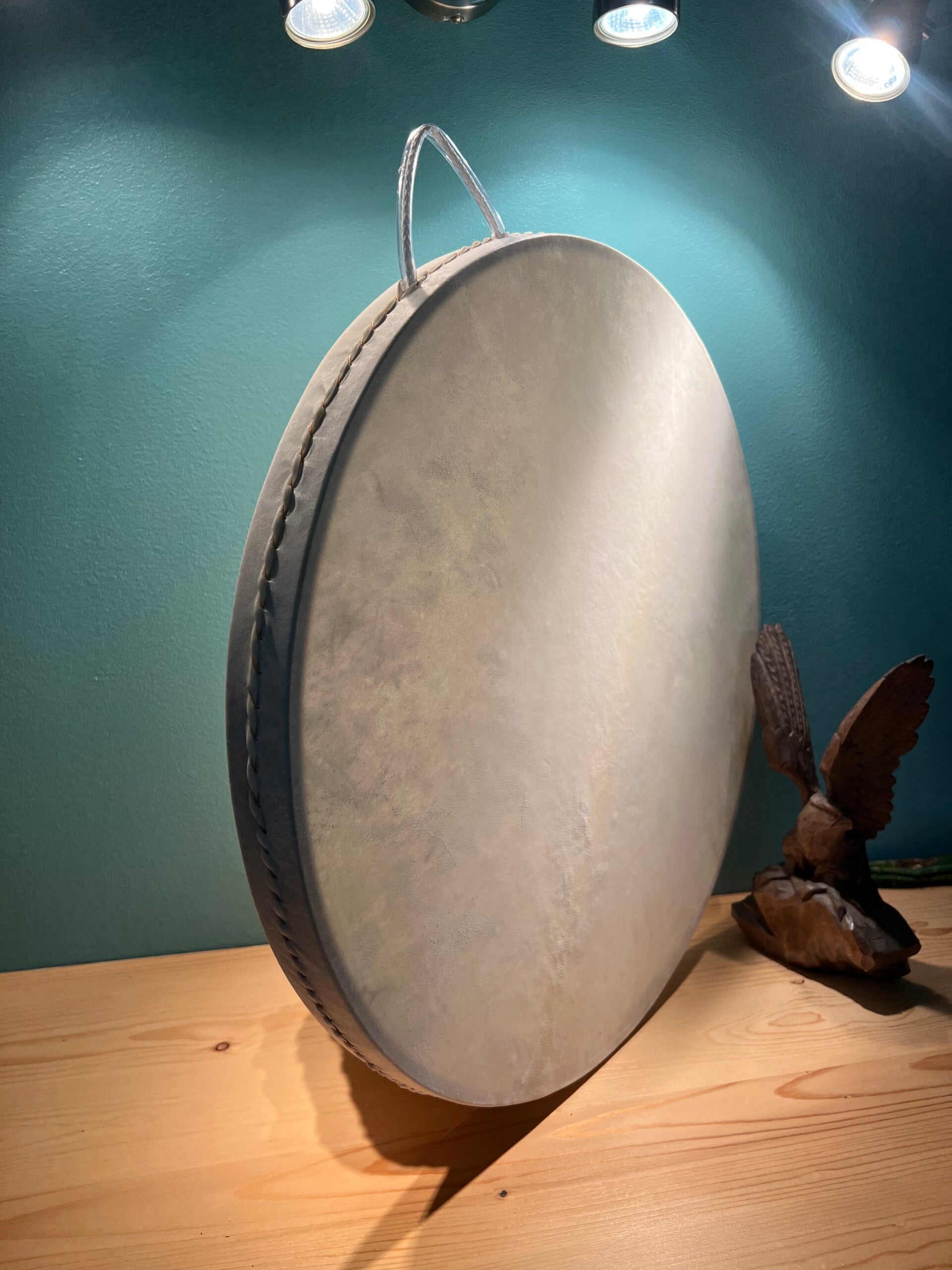 Laat de kracht van de oceaan tot leven komen met de handgemaakte Sjamanistische Ocean Drum van 50 cm. Met een frame van hout, authentiek geitenvel en zorgvuldig geselecteerde kralen, wekt dit instrument betoverende oceaangeluiden op, variërend van zachte golven tot een donderende storm.