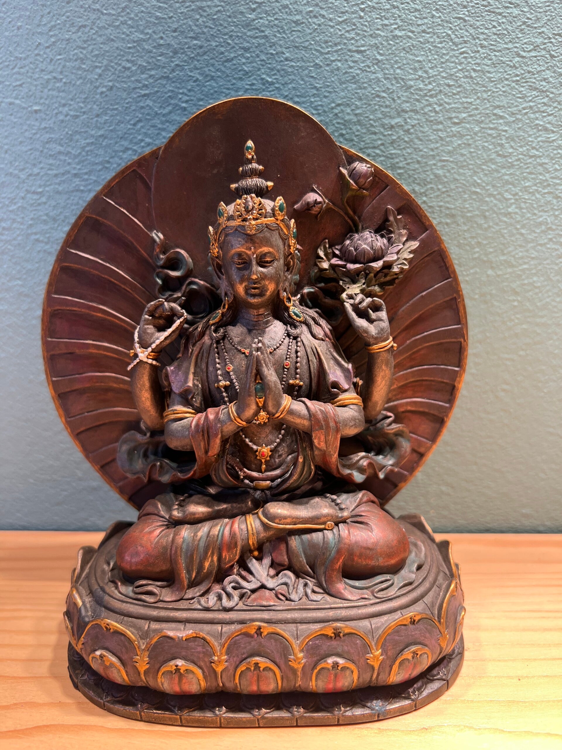 Avalokiteshvara, ook bekend als Chenresig, is een van de meest vereerde bodhisattva’s in het boeddhisme. Hij begeleidt mensen naar nirvana en staat symbool voor grenzeloze mededogen.